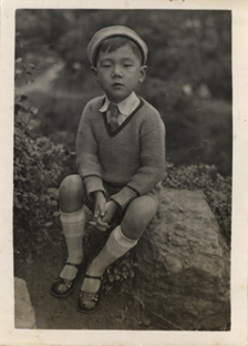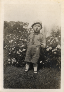 (1931郁铭芳童年单人照) 1932年 入读美国传教士安迪生夫妇1931年开办的慕尔堂幼稚园,经常与小朋友们在院子里荡秋千,听英文歌曲。