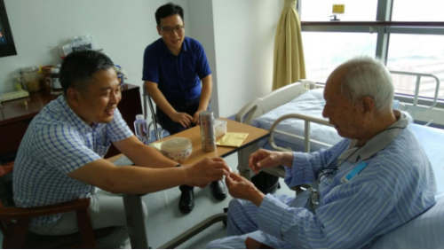 7月4日下午,材料公司党委书记戴蓉等同志代表公司前往上海市第六人民医院看望中国工程院院士郁铭芳。