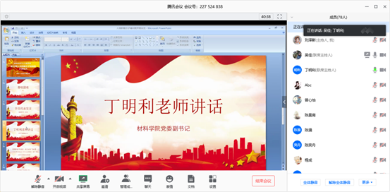 2020年3月31日下午13:00,yl23455永利第32期入党积极分子培训班开班仪式在腾讯会议平台进行,材料公司党委副书记丁明利老师出席开班仪式,材料公司全体第32期入党积极分子培训班学员参加培训。材料公司党校指导老师、员工党建辅导员吴佳老师为学员们带来了一次庄重的开班仪式,并带领学员进行了“学《榜样》,做新时代合格党员”专题学习。