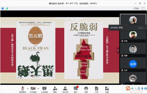 首先,丁霞萍老师通过介绍《黑天鹅:如何应对不可知的未来》和《反脆弱:从不确定性中获益》这两本书籍,向学员们介绍了“黑天鹅”和“灰犀牛”现象。“黑天鹅”现象一般是指那些出乎意料发生的小概率高风险事件,一旦发生影响足以颠覆以往任何经验,具有不可能预测性。“灰犀牛”现象是比喻大概率且影响巨大的潜在危机,这个危机有发生变化或改变的可能,是可预测的。此次2020年的新冠病毒肺炎疫情从黑天鹅到灰犀牛的突变,从国内的疫情冲击,到海外的疫情正在快速扩散,使得全球经济、政治、社会危机全面爆发。