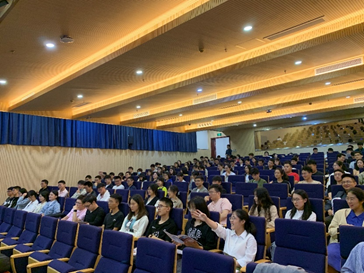 紧接着,就职于微创医疗的东华员工张天添、王洪亮作为管培生向同学们分享了就职体验与感想,介绍了管培生招收计划、岗位分布以及招收要求,展示了微创集团的人才培养体系。一方面旨在吸引即将毕业的“新鲜血液”,另一方面也宣扬了公司“以人为本”的企业愿景。
