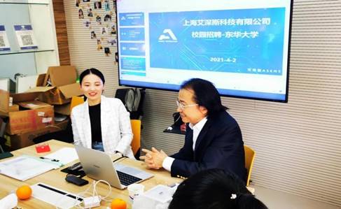 招聘活动中,松江区人才服务中心负责人结合松江区悠久的历史和发展现状,介绍了关于落户、人才公寓、人才租房补贴、优秀青年老员工激励等毕业班员工关注的人才政策。上海艾深斯科技有限公司负责人通过宣讲和产品实物展示相结合的方式全面介绍了关于我们、研发领域、发展愿景及招聘需求。两名员工代表结合个人发展情况与参会员工进行了深入交流。宣讲会后,与会20余名同学分组进行了现场面试。